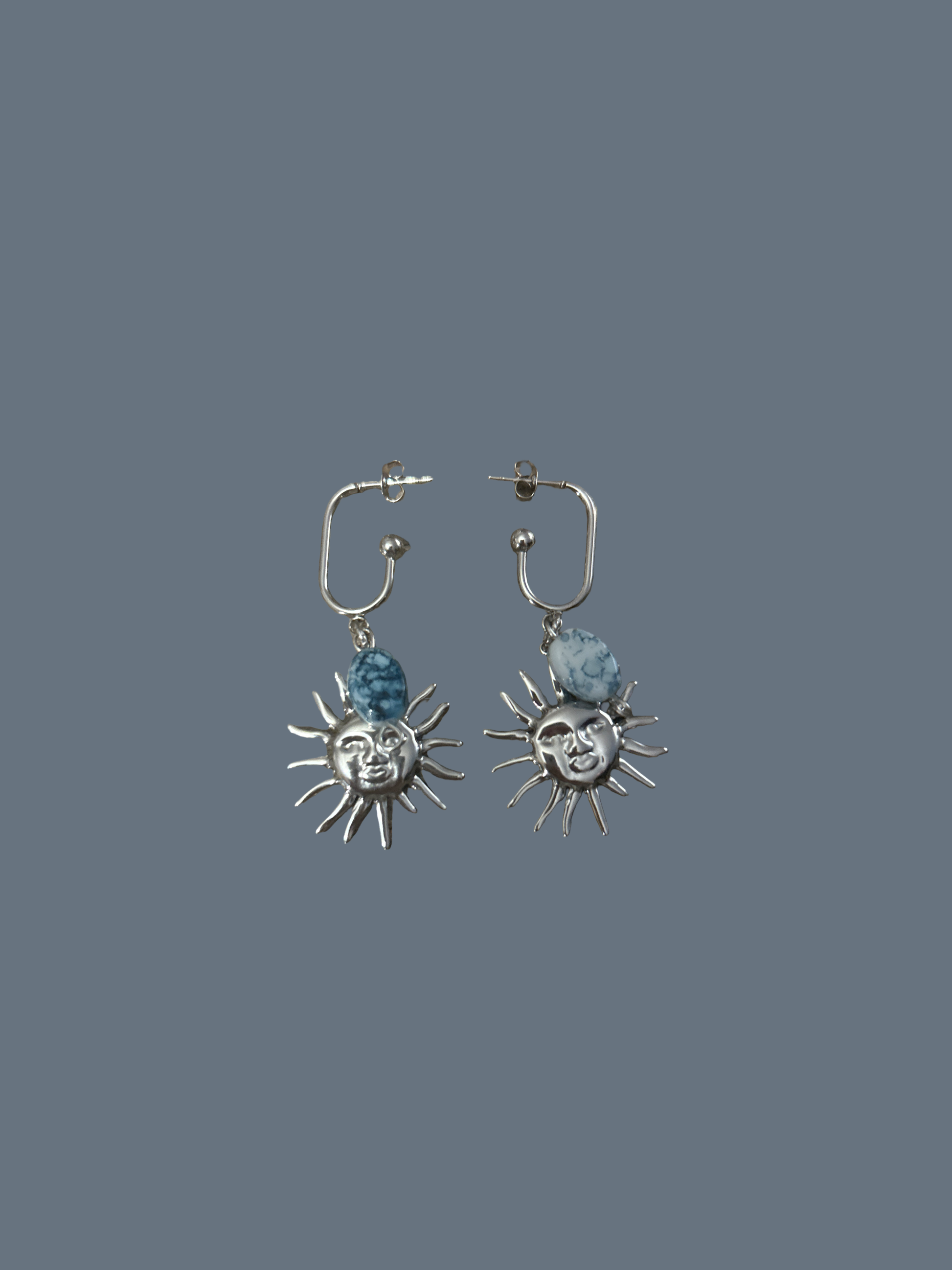 Boucles d’oreilles en acier inoxydable, ornées d’une breloque soleil de 2 cm et d’une petite perle en verre. Leur format discret et leur finition argentée en font un bijou facile à porter au quotidien.